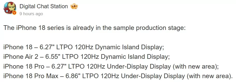 تسريب جديد يكشف أحجام ومواصفات شاشات سلسلة هواتف iPhone 18 قبل الإطلاق المرتقب